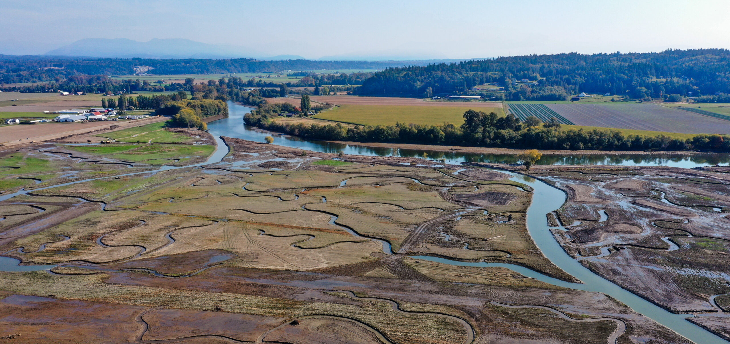 Following a 2005 Chinook Salmon Recovery Plan, which identified that the lack of variable, tidally influenced habitat in the river delta was a limiting factor to Chinook salmon, the Stillaguamish Tribe acquired parcels of land around the Stillaguamish River with the vision to restore some of the area’s historical Stillaguamish Estuary.