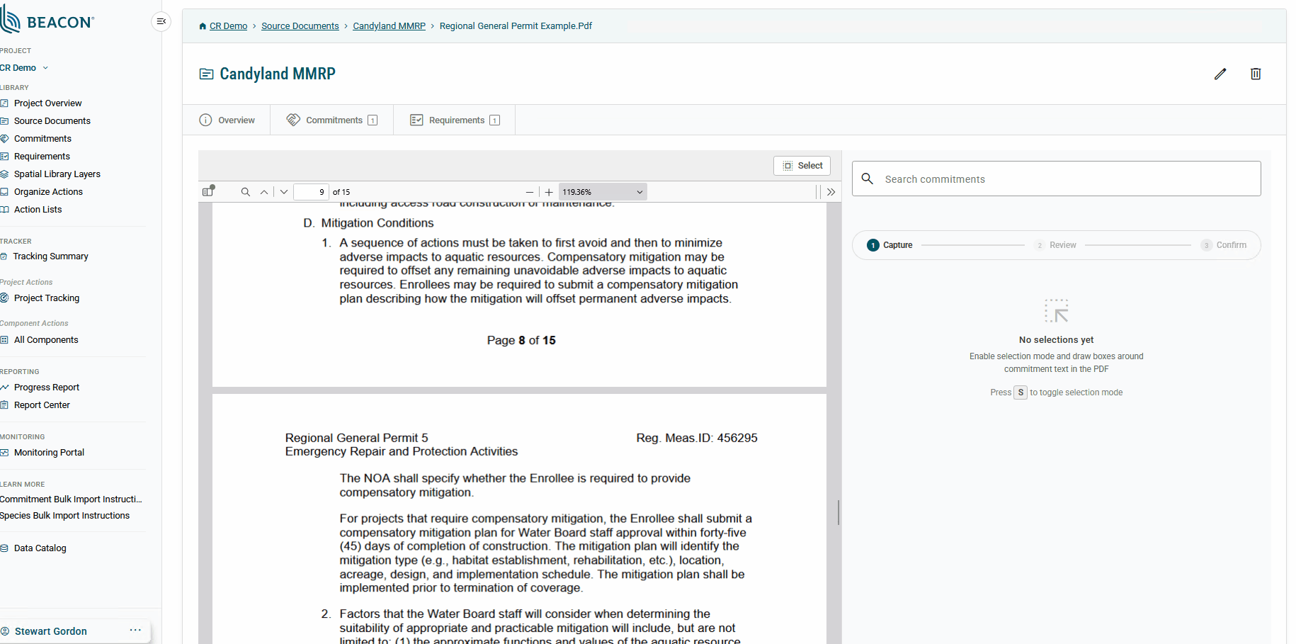 A good example is Beacon™, ESA’s compliance tracking platform. Beacon’s AI-assisted commitment parsing capability helps users extract regulatory commitments from lengthy environmental documents and transform them into an end-to-end system of record. What was once a manual, error-prone process (copying text from PDFs into spreadsheets and tracking revisions) becomes a structured workflow that supports monitoring, reporting, and accountability over the life of a project.